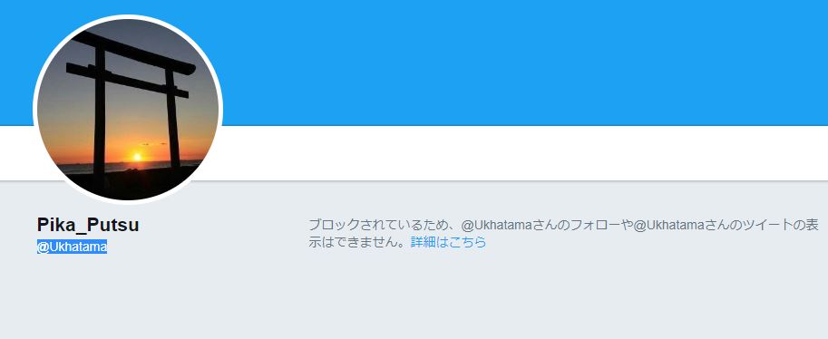 そして、「Pika_Putsu@Ukhatama」は、僕をブロックしました。