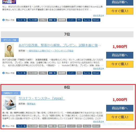 【恐怖克服】サヨナラ・モンスター(Voice)(https://svoice.info)が大手販売サイトのランキング(体の悩み・健康カテゴリ)で8位でした!もっと多くの方に、この情報を届けたいです。人は、「新しい解釈」や「視点」を手に入れると変わっていけます。自分を変えることが本当の解決法!他人を変えようとするのは支配です。