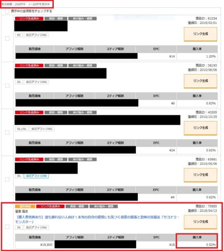 購入率って何? という方は「ご利用マニュアル » EPCと購入率について - インフォトップ」をご覧下さい。