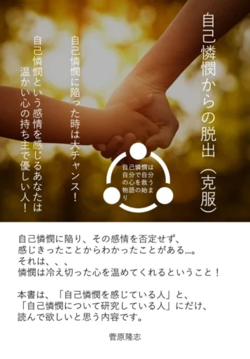 ですから、他人を大切に思い、可哀想だと思えるようになり、傷つけない人が増えて欲しいので、「自己憐憫からの脱出(克服」を出版しました。このことを理解して欲しいと思います。そして、自己憐憫の良いところを知って欲しいと思います。