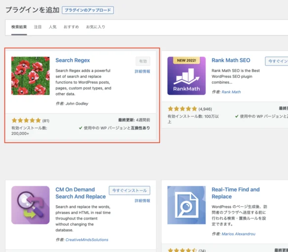 この悩みが解決出来るプラグインがあります。それが「Search Regex」です。