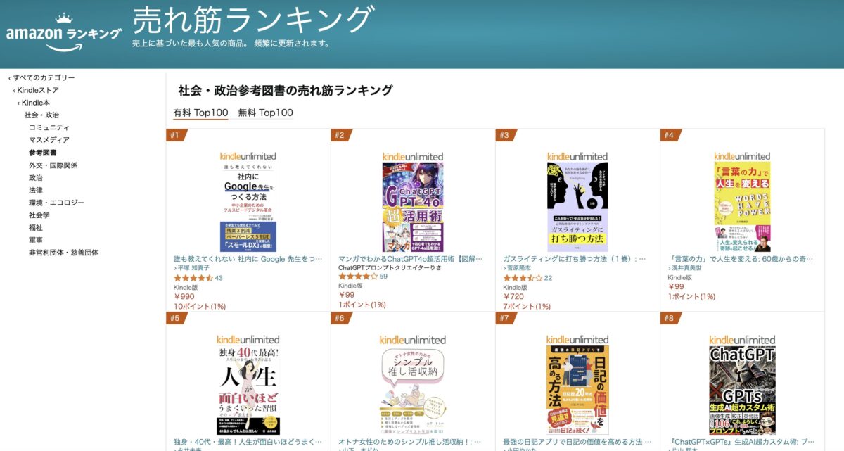 Amazonの社会・政治参考図書の売れ筋ランキングで4位!