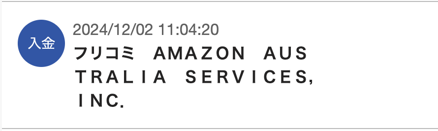 「フリコミ AMAZON AUSTRALIA SERVICES, INC.」という名義の振り込みは、Kindle(オーストラリア)のロイヤリティの可能性が高いです。僕もこの振り込みをされましたが、調べたら9月分(今12月)のロイヤリティでした。