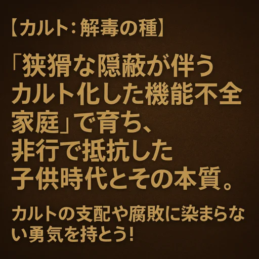 以上を踏まえて、「狡猾な隠蔽が伴うカルト化した機能不全家庭」をより深く理解するための記事を、ChatGPT4oを活用して記事を書きました。