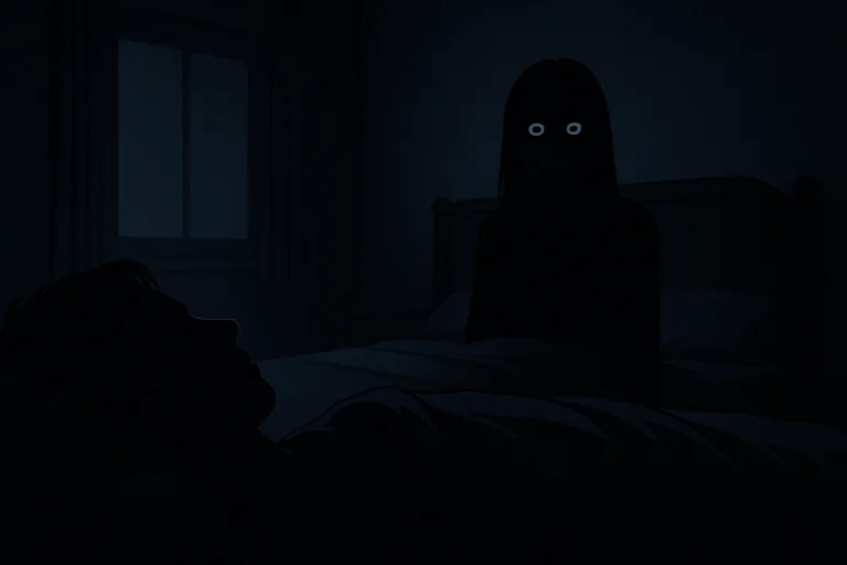 夜中の3時に突然お姉ちゃんを睨みつける妹 異変を感じて目を覚ましたお姉ちゃんは 微動だにせず自身を見つめる妹を目の当たりにします はじめはふざけているだけだと思いましたが お姉ちゃんはだんだん怖くなり瞬きもしない妹は表情を変えることなく涙だけを流しました 母親が呼びかけると妹は何事もなかったかのように再び眠りについたといいます お姉ちゃんは妹のせいでトラウマになってしまったそうです(AIによる文字起こし)