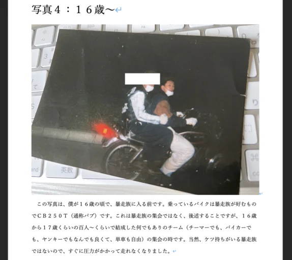 以前セルフ出版した書籍「子供の頃、死ぬかと思った話・・・。暴力団員が金属バットを振り回していて…。: この話から学べる大切な記憶のお話と、暴走族洗脳の構造と過去の心の癒し(ChatGPT4.0) 非行・更生 Kindle版」の中に掲載した画像です。1996年か1997年だったと思います。 懐かしい写真。
