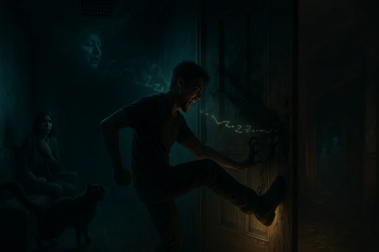 夢の話に戻りますが、上からは不気味な婆さんのお経、目の前の玄関からは悪霊が引き摺り込もうと話しかけている。猫もパートナーもパニック。で、僕はどうなっていたか?僕は夢の中で面白くなって笑っていました。そして玄関の前に行って、悪霊に怒鳴りつけました。心は冷静です。悪霊を脅かしてやろうと怒鳴ったのです。そして、自分の家ではなく廃墟みたいなアパートだったので、ドアを思い切り蹴飛ばして、「ほら、入ってこいよこの野郎、こっちからドア開けてやるよ」とドアを蹴飛ばしてドアを壊して外が見えるまでドアを蹴って破壊してあげました。すると悪霊は消えました。