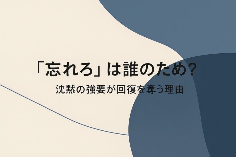 「加害者が“過去を語るな/もう水に流せ”と迫るのはなぜか?」「それは被害者の回復を妨げないか?」という点について、研究や専門家の知見で裏付けします。